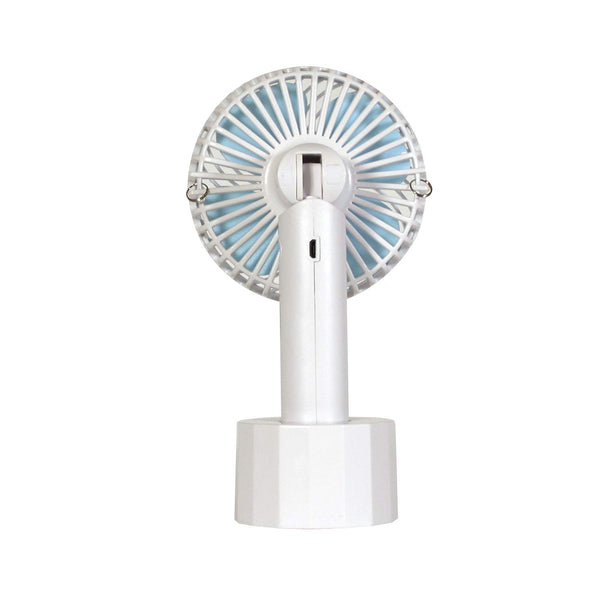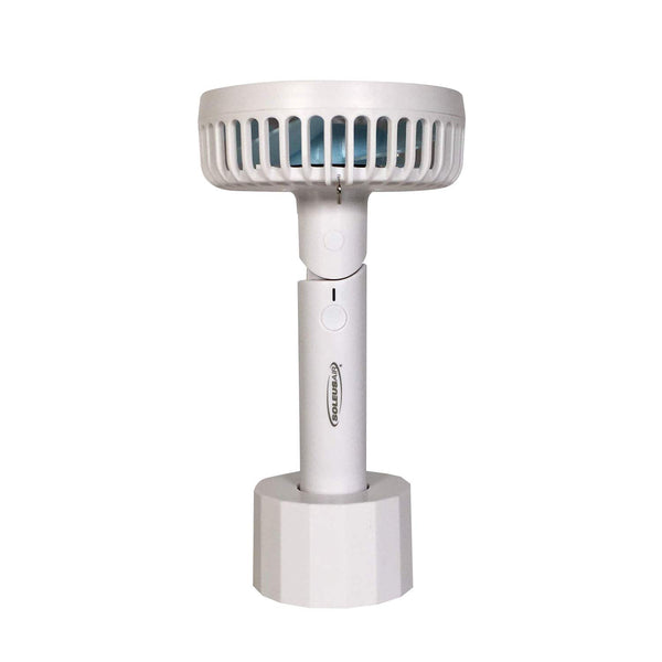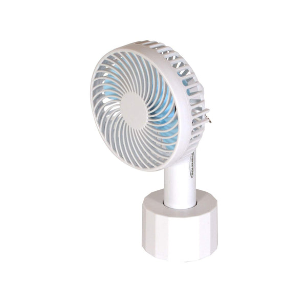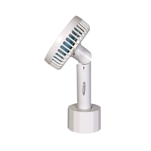 The Soleus Air 4" Rechargeable Handheld Fan with Adjustable Lanyard and Mounting Base is great for outdoors, sporting events, and lounging around the pool. The 3-speed motor and 90-degree tilt fan head put the perfect amount of airflow where it is needed most. The included stand duals as a tabletop fan or in the cupholder of a favorite chair. The adjustable 40" lanyard makes the fan a great accessory for the entire family. The fan will operate continuously up to 10 hours on the lowest fan speed. Stay cool on-the-go and be ready for every adventure with Soleus Air.